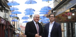 Presidenti gjerman në çaj dhe bakllava në Çarshinë e Shkupit (Video)