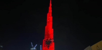 Ndërtesa më e lartë në botë shndërrohet në flamurin kuq e...