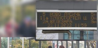 Në tabelën informative shkruan se do vijë për dy minuta, autobusë...