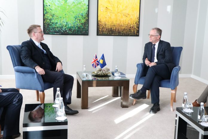 Ambasadori i Mbretërisë së Bashkuar, Nicholas Abbott, ka takuar sot zëvendëskryeministrin Besnik Bislimi, me ç’rast ka kërkuar që të ketë një periudhë tranzicioni për rregulloren e re të Bankës Qendrore të Kosovës.