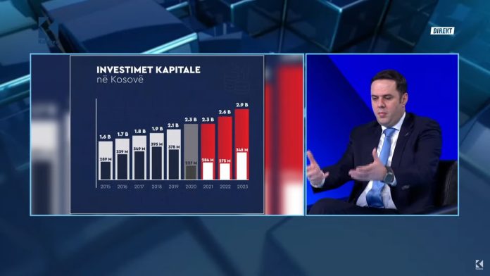 “Më 2023, nga 2.9 miliardë euro, investime kapitale në Kosovë janë 348 milionë euro. Më 2023, ne kemi investime kapitale njëjtë sikur kur kemi gati 3 miliardë euro buxhet, sikur kur kemi pasur buxhet më 2017 1.8 miliard. Pra, kot e rrit buxhetin kur s’ke investime kapitale”, u shpreh ai.