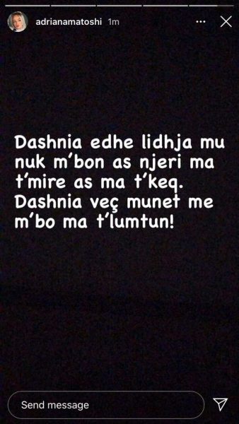 “Dashnia edhe lidhja mu nuk m’bon as njeri ma t’mire as ma t’keq. Dashnia veç munet me m’bo ma t’lumtun!”, ka shkruar ajo.