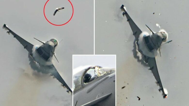 Fotot të jashtëzakonshme tregojnë momentin kur një zog shkatërroi kabinën e një aeroplani luftarak me vlerë 85 milionë dollarësh.