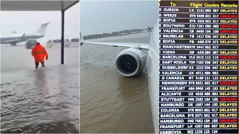 Sipas mediave të huaja, një stacion meteorologjik në aeroport regjistroi reshje prej gati 5 centimetra në orë, duke arritur kulmin deri në 9 centimetra në më pak se një orë.