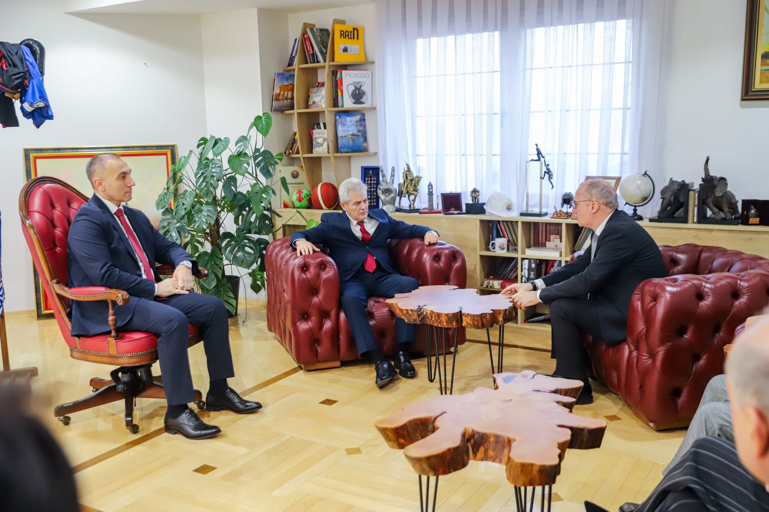 Kryetari i Bashkimit Demokratik për Integrim, Ali Ahmeti i shoqëruar nga Zëvendës kryetari i parë i Qeverisë, Artan Grubi kanë pritur në takim ministrin për Europë dhe Punë të Jashtme të Republikës së Shqipërisë, Igli Hasani.