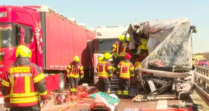 Një kamion që transportonte naftë dhe kishte si destinacion Berlinin, tentoi të ndryshonte korsinë dhe u përplas me një kamion tjetër, i cili humbi kontrollin u përplas kokë më kokë me një autobus me turistë polakë.