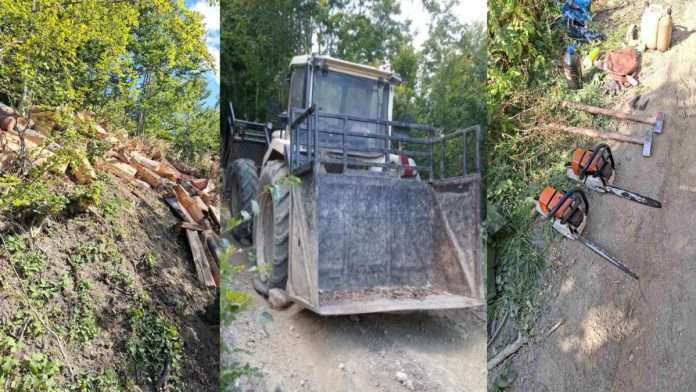 “Nga liria janë privuar S.A.(28), R.A.(22), XH.A.(24), E.A.(37), B.S.(39), D.A.(51), Q.A.(53), S.A.(47), XH.S.(34), të gjithë nga fshati Brezë dhe B.M.(27) nga fshati Haraçinë, Shkup. Personat janë kapur duke prerë dru në mënyrë të paligjshme, ku janë gjetur rreth 400 metër kub dru zjarri të prera. Në vendngjarje janë gjetur katër kamionë të ngarkuar me dru zjarri, një automjet pasagjerësh, tre sharra elektrike me motor dhe sende të tjera që përdoreshin për prerjen e druve. Automjetet, drutë dhe sendet e tjera janë marrë për procedim të mëtejshëm, ndërsa personat janë ndaluar në stacion dhe me ta është realizuar bisedë zyrtare”, thonë nga MPB./tv21.tv