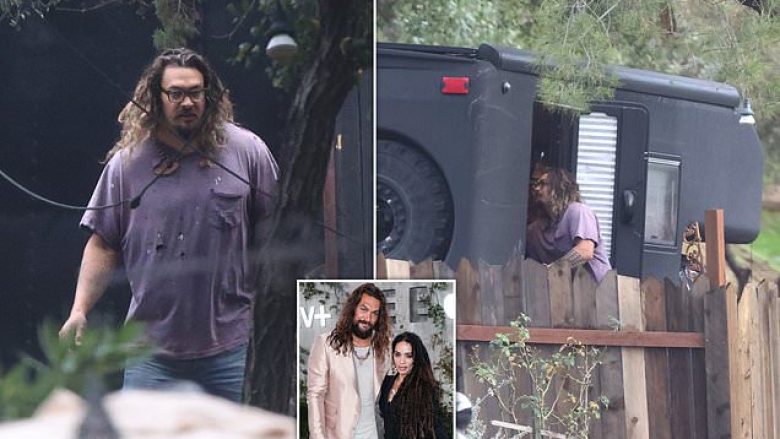 Jason Momoa po jeton në furgonin e tij të parkuar në shtëpinë e një miku të tij në Los Angeles pasi njoftoi divorcin e tij tronditës nga gruaja Lisa Bonet këtë muaj.