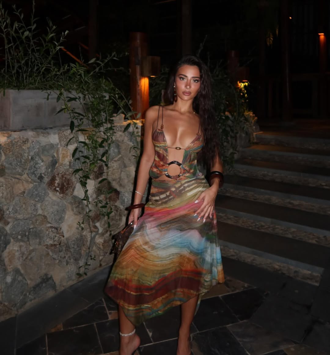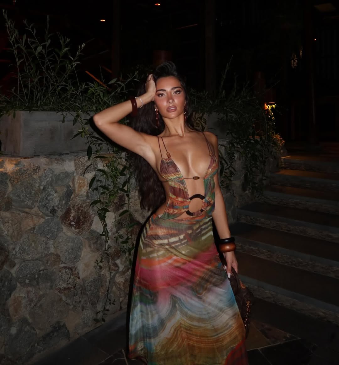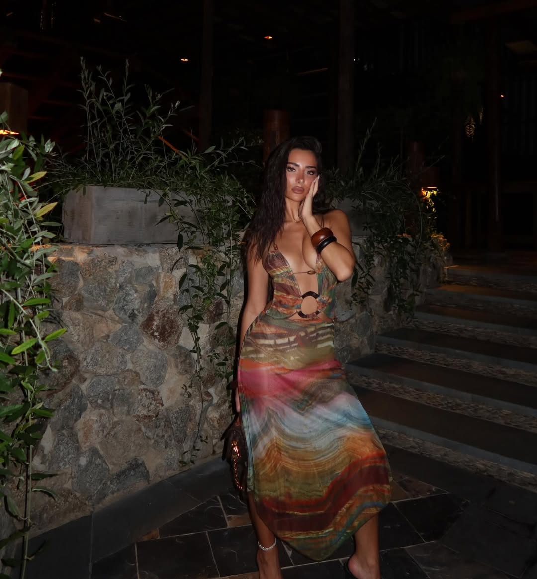 E veshur me fustan të hapur dhe provokues, Alba vë në pah linjat e saj trupore në top formë.