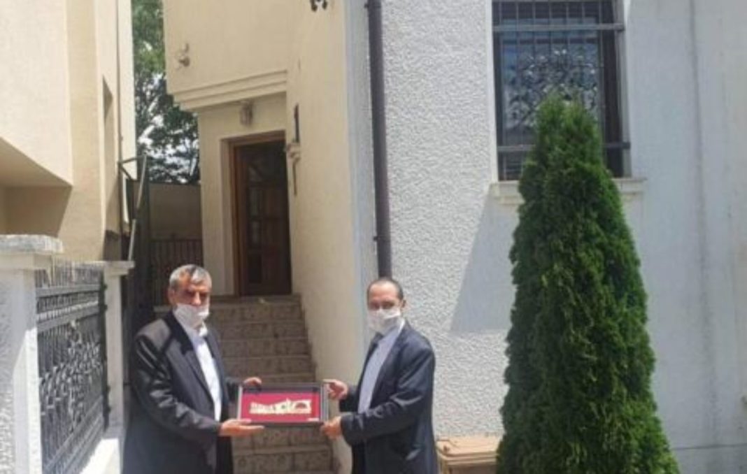Në fund të takimit, në shenjë të urave të bashkëpunimit të pritur, drejtori Ismaili ia dhuroi Ambasadorit një punim me Urën e Gurit të Shkupit.
