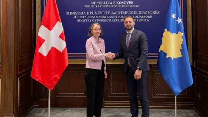 Republika e Kosovës dhe Konfederata e Zvicrës kanë mbajtur konsultimet e rregullta dypalëshe në takimin e zhvilluar mes dy delegacioneve nga të dyja shtetet respektive të udhëhequra nga  Ilir Muçaj, u.d. Sekretar i Përgjithshëm në Ministrinë e Punëve të Jashtme dhe Diasporës së Kosovës dhe  Muriel Peneveyre, Ndihmës Sekretare e Shtetit, Ambasadore dhe Shefe e Divizionit për BE dhe Azi në Ministrinë e Punëve të Jashtme të Zvicrës.
