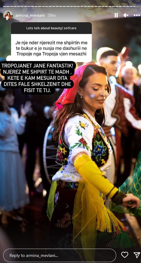 “Tropojanët janë fantastik! Njerëzit me shpirt të madh. Këtë e kam mësuar dita ditës falë Shkëlzenit dhe fisit të tij”, ishte replika e saj./Lajmi.net/