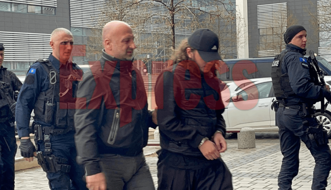 Gazetari i T7, Çlirimtar Morina, po qëndron atje, prej ku ka dërguar fotografi të të dyshuarve. Të njëjtit janë munduar të fshehin fytyrën, derisa kanë hyrë në gjykatë.