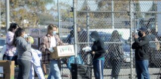 Brad Pitt me orë të tëra shpërndan pako me ushqim për...