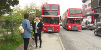 Autobusi i stërmbushur me nxënës qarkullon me dyer hapur, ja si...