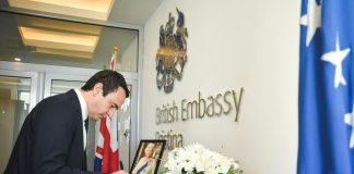 Kurti nënshkruhet në librin e zisë për Mbretëreshën Elizabeta II (FOTO)