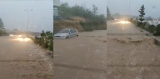 Shiu i rrëmbyeshëm përmbys rrugët në Manastir