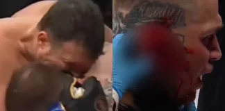 Momente horrori në kafaz: Luftëtari e kafshoi në vesh rivalin, rrahet...