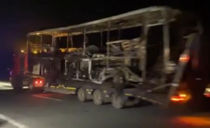 Lajme Autobusi i djegur largohet nga vendi i fatkeqësisë në Bullgari (VIDEO)