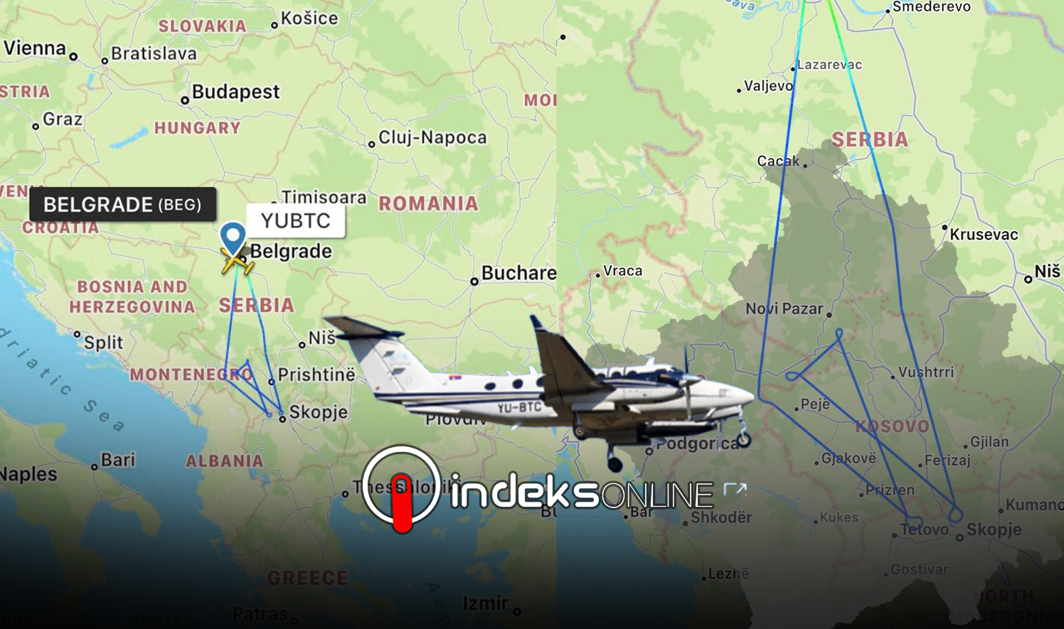 Në aplikacionin “Flight Radar 24” shihet se, avioni “YU-BTC” nga Beogradi për më shumë se dy orë ka fluturuar mbi qiellin e Kosovës, raporton Indeksonline.