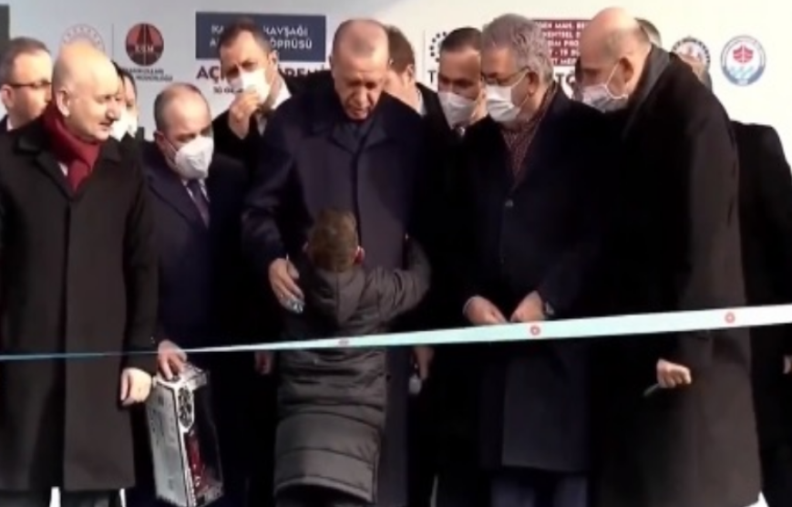 Erdogani bën një shenjë nga stafi i tij, e cila nuk kuptohet, megjithatë fëmija i vogël këmbëngul.