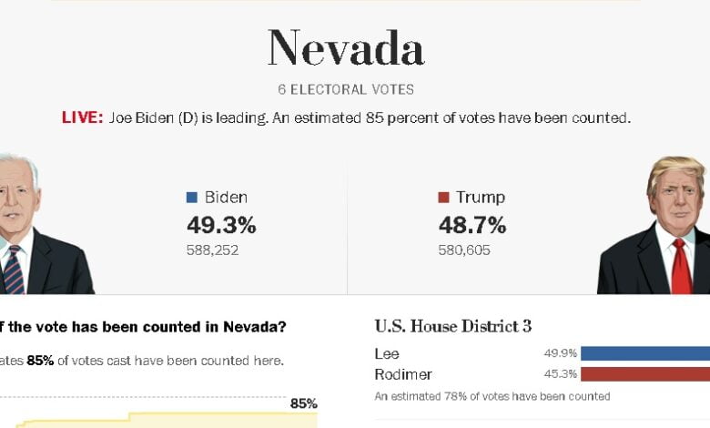 Diferenca në vota mes Trump dhe Biden në Nevada aktualisht është vetëm 7 600 të tilla.