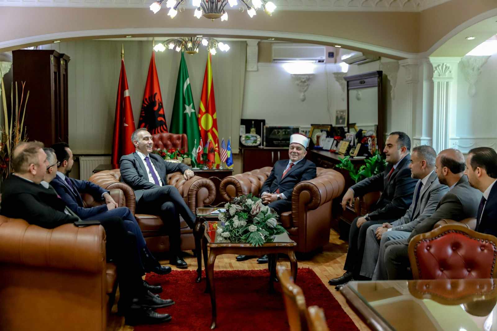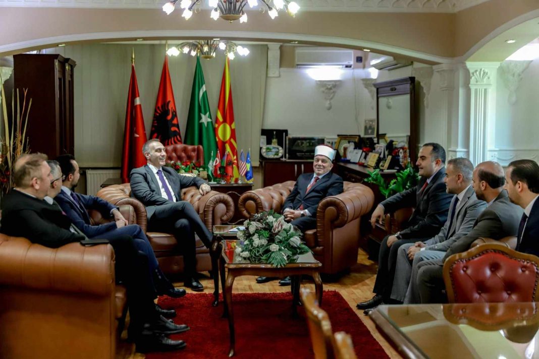 Zëvendës kryeministri Artan Grubi i shoqëruar nga ministri i Arsimit dhe Shkencës Jeton Shaqiri dhe zëvendës ministri i Mbrojtjes Tiron Jajaga sot vizituan Bashkësinë Fetare Islame dhe takuan Reisul Ulema e Bashkësisë Fetare Islame të Republikës së Maqedonisë së Veriut, H. Hfz. Shaqir Ef. Fetai.