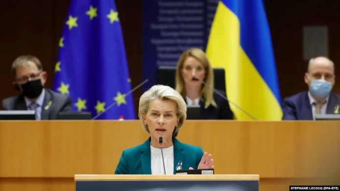 “Me shpejtësi të dritës, Bashkimi Evropian ka miratuar tri valë të sanksioneve të ashpra kundër sistemit financiar të Rusisë, industrive të teknologjisë së lartë dhe elitës së korruptuar”, ka thënë shefja e Komisionit Evropian, Ursula von der Leyen përmes një komunikate.