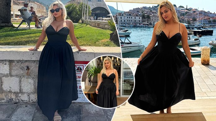 Në imazhet e postuara në rrjetet sociale, 35-vjeçarja shfaqet e veshur me një fustan elegant të zi me dekolte të hapur, ndërsa pozon në disa lokacione të bukura në qytetin bregdetar Hvar.