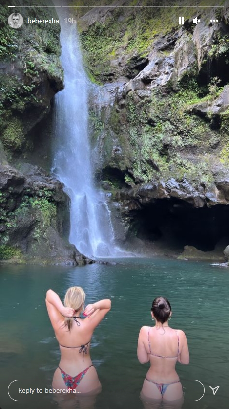 Interpretuesja e hitit “I’m a mess” tregoi të pasmet para kamerës, e veshur me bikini teksa shijonte një not në ujin e kthjellët të burimeve të ishullit tropikal.