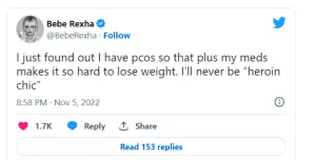 “Sapo kuptova se kam PCOS, kështu që plus ilaçet e mia, e bëjnë kaq të vështirë humbjen e peshës. Unë kurrë nuk do të jem ‘heroinë e elegancës’”, shkroi Bebe në “Twitter”.