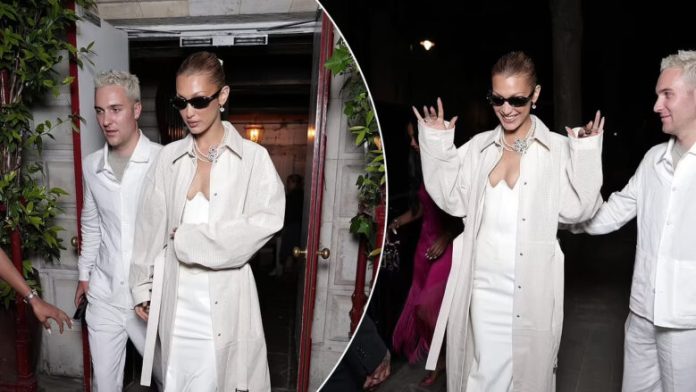 Më vonë, Bella u pa me një tjetër fustan impresionues, vintage me prerje të thellë dhe fund asimetrik, teksa largohej nga hoteli “Connaught”.
