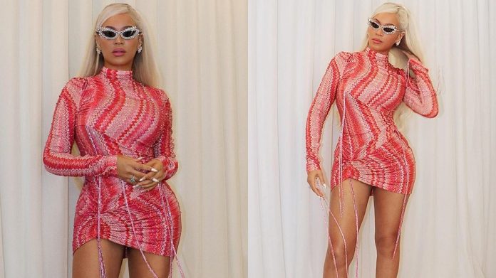 Krijuesja i hitit “Drunk in Love”, e cila kohët e fundit tronditi një pamje të mrekullueshme të Vitit të Ri, e kombinoi fustanin e zjarrtë me këpucë “Valentino” ngjyrë rozë, shkruan DailyMail.