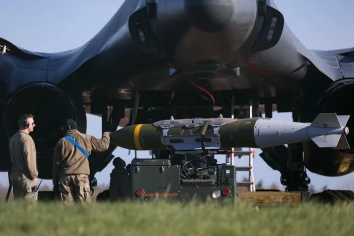 Personeli u pa duke ngarkuar municione në një bombardues B-1, ndërsa po përgatitej edhe aeroplani gjigant Boeing B-52 Stratofortress.