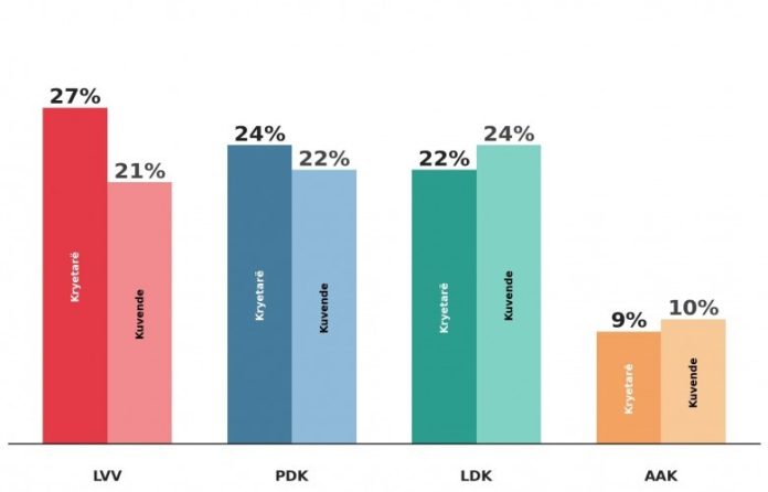 Nëse mblidhen votat e të gjitha komunave për kandidatët për kryetarë, prin LVV me rreth 27% në nivel vendi, ndërsa për kuvendet komunale prin LDK me rreth 24%.