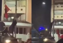 Në rrjetet sociale po qarkullon një video nga Kumanova, ku shihet një polic i cili ka hypur mbi furgonin e policisë dhe e përdhosë...