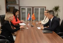 Zëvendëskryeministri i parë dhe ministri i Mjedisit Jetësor dhe Planifikimit Hapësinor, Izet Mexhiti sot ka takuar ambasadoren e Kroacisë në Shkup, E.S. Nives Tiganj.