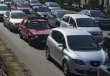 Kolona të gjata e mbi një orë pritje në bulevardin “Goce Dellçev” për shkak...