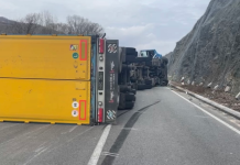 Një kamion tërheqës është rrokullisur mëngjesin e sotëm në rrugën Shkup – Bllacë, pas së cilës qarkullimi është ndërprerë.