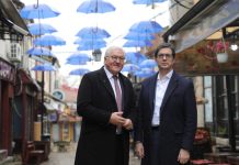 Presidenti gjerman në çaj dhe bakllava në Çarshinë e Shkupit (Video)