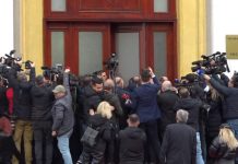 Përplasje në hyrje të parlamentit të Shqipërisë, deputeti i PD-së thyen xhamin e derës...