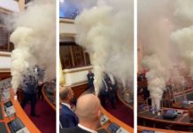 Kaos në Kuvendin e Shqipërisë, tymi pushton sallën dhe përmbysen karriget