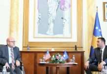 Kryetari i Kuvendit të Republikës së Kosovës, Glauk Konjufca, priti në një takim ambasadorin e Shteteve të Bashkuara të Amerikës (SHBA), në Kosovë, Jeffrey...