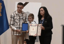 Presidentja e Kosovës, Vjosa Osmani ka ndarë urdhrin “Heroi i Kosovës”, për policin Afrim Bunjaku, i cili u vra më 24 shtator në veri.