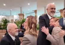 Rama i ulet në gjunjë Melonit dhe e përqafon