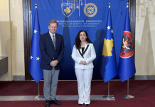 Presidentja e Kosovës, Vjosa Osmani, po pret në takim emisarin e posaçëm të Bashkimit Evropian për dialogun Kosovë-Serbi, Peter Sorensen.