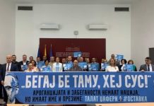 Deputetët e VMRO-DPMNE-së e presin me transparent Talat Xhaferin, kërkojnë dorëheqjen e tij