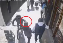 Në rrjetet sociale është publikuar video ku shihet se si i vidhet qaforja një qytetareje qe cila nën shoqërimin e një mashkulli po ecte...