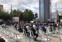 Disa minuta para se të nisë manifestimi i organizuar nga Lëvizja Vetëvendosje, në sheshin Skënderbeu në Prishtinë po bëhen organizimet e fundit.