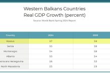 Maqedonia e Veriut me rritjen më të ulët ekonomike në Ballkanin perëndimor për vitet 2024 dhe 2025, përcjell agjencia e lajmeve INA.